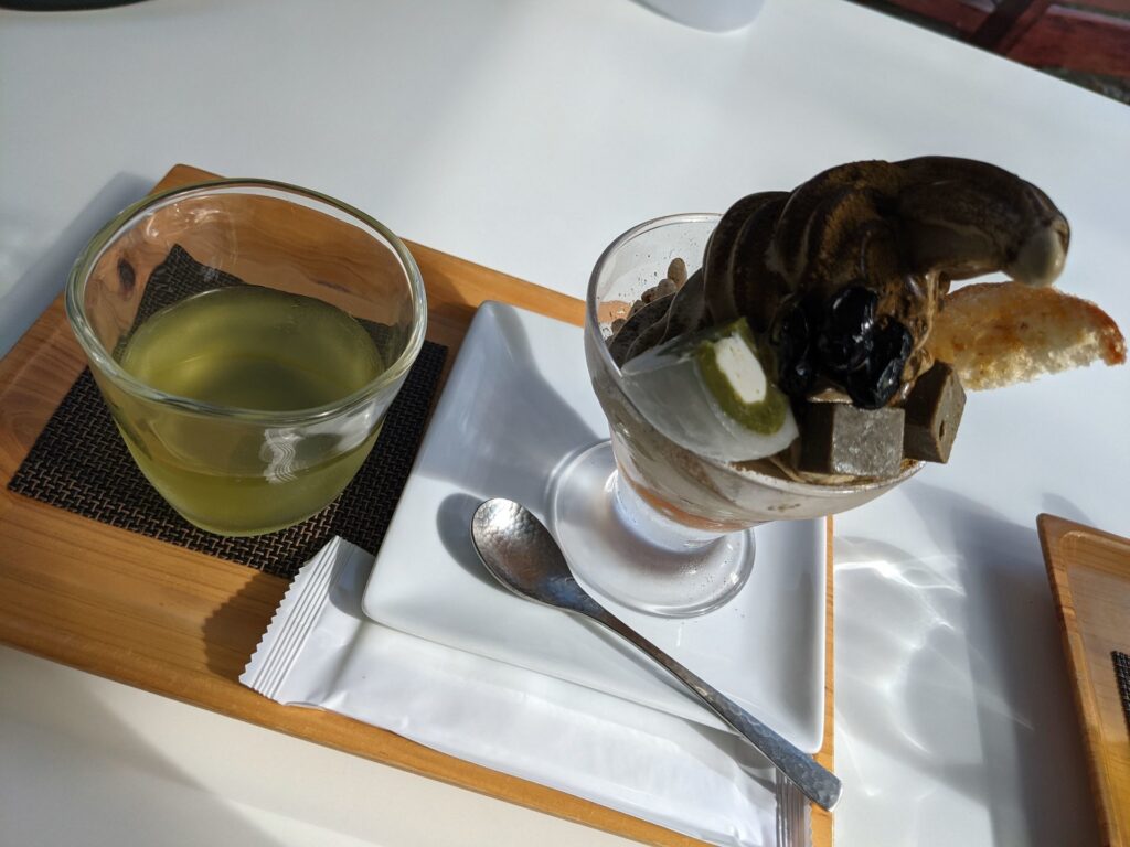 それぞれ、抹茶とほうじ茶のパフェを注文。