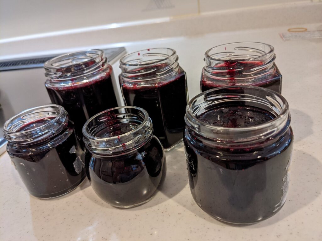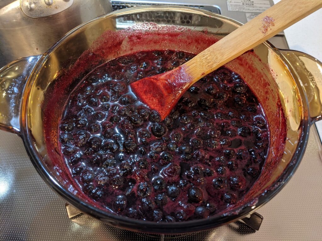ジャムづくりは単純で、材料はブルーベリーの量の40%くらいの砂糖と、レモン汁だけです。