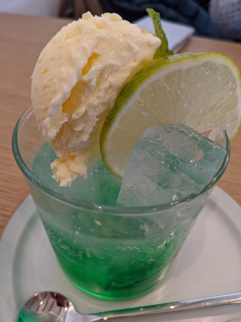 とてもおしゃれな店内で、今回は「クリームソーダ」を頼んでみました。