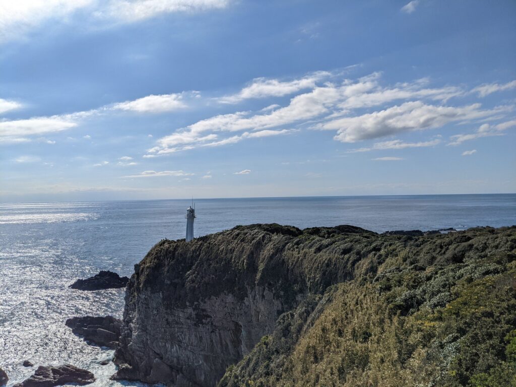足摺岬灯台を眺めることのできる高台へ行って、太平洋の広さを実感しました。