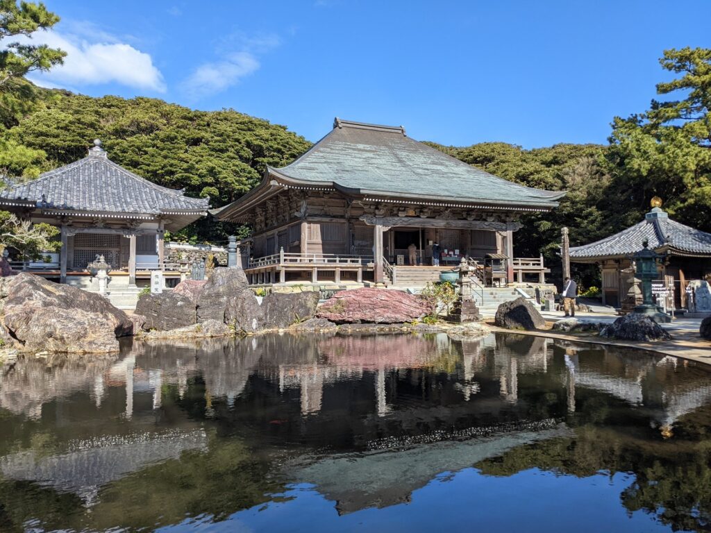 本堂の前には池があって、鏡のように景色を映している感じがとてもきれいです。