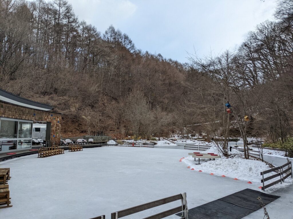 星野温泉には、ケラ池スケートリンクというものがあるらしく、なんと氷結した池をそのままスケートリンクにしているようです