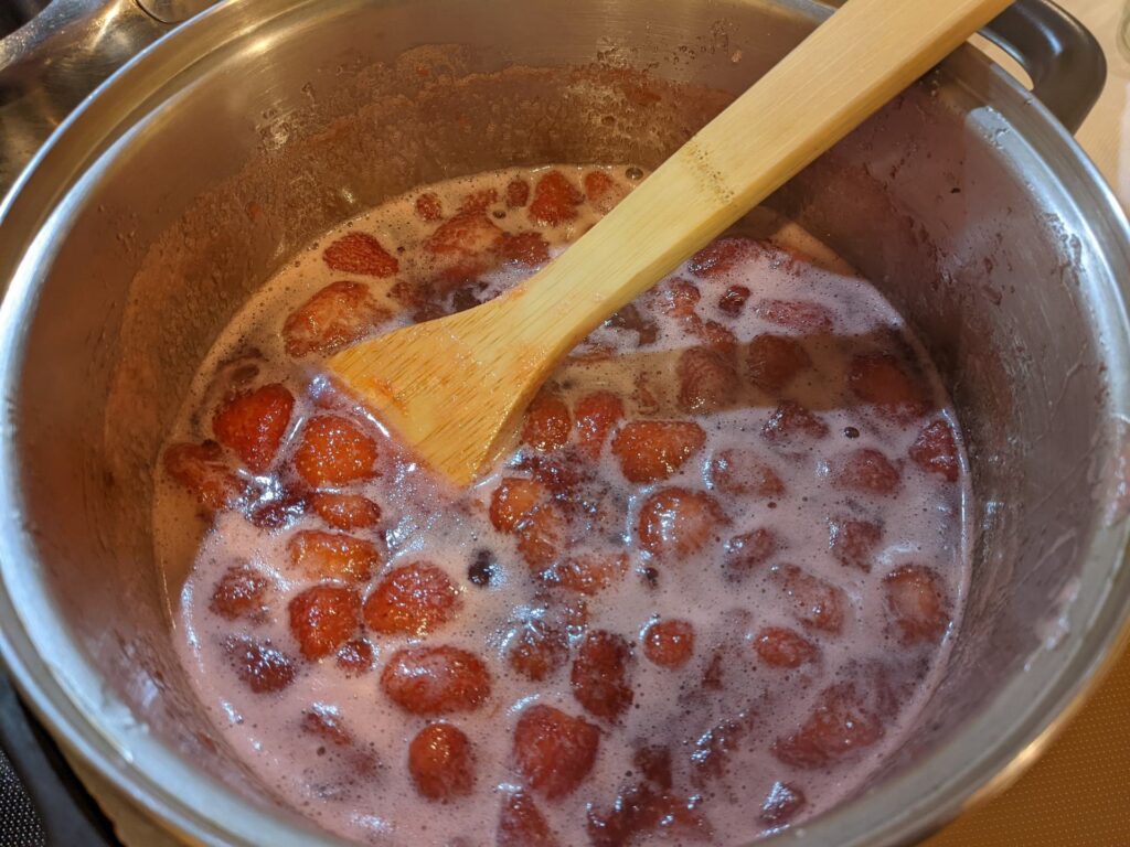 最後に、買ったいちごを使ったジャムづくりの様子です。まあ、いつもと同じ感じですが(^^;)・・・
