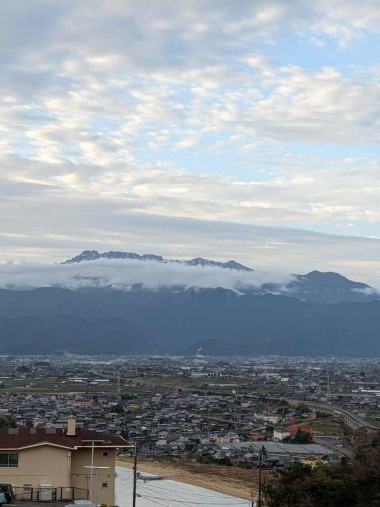 昨日は雨で見えなかった石鎚山が、雲の間から顔をのぞかせてくれました。