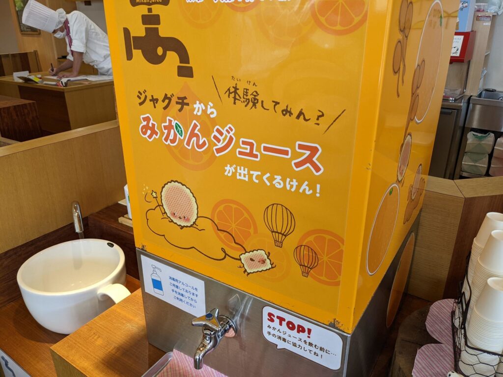 初めて、ミカンジュースの蛇口をひねりました♪楽しいですね。