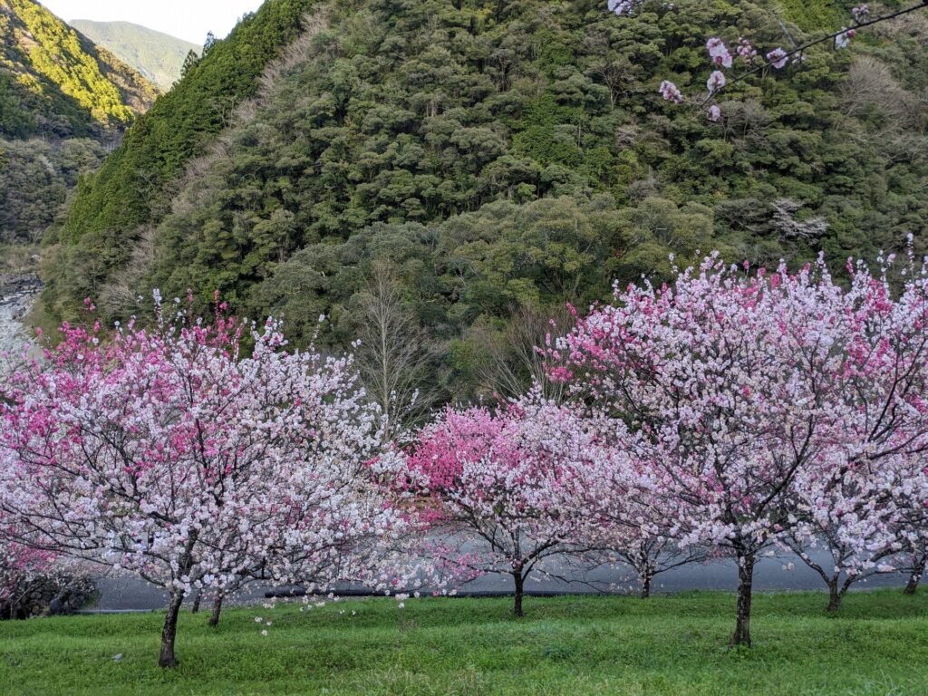 途中、仁淀川町の花桃を見て、
