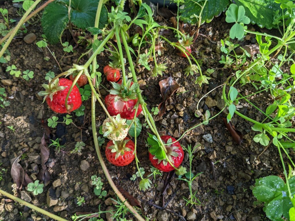 イチゴが色づいてますね〜!かわいいので食べるのがもったいないですね。