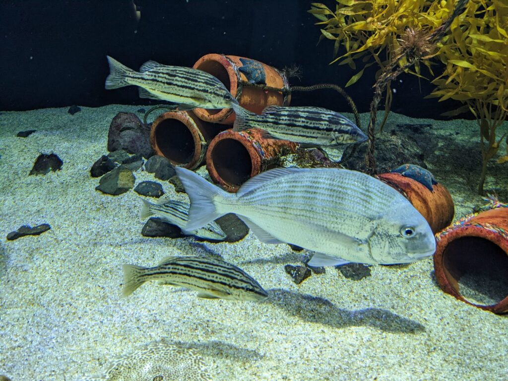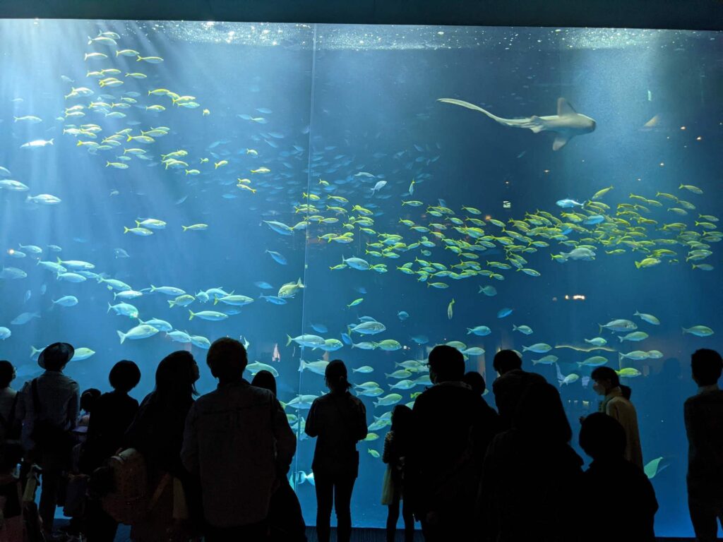 大きな水槽を悠々と泳ぐおさかなさん。癒されます。