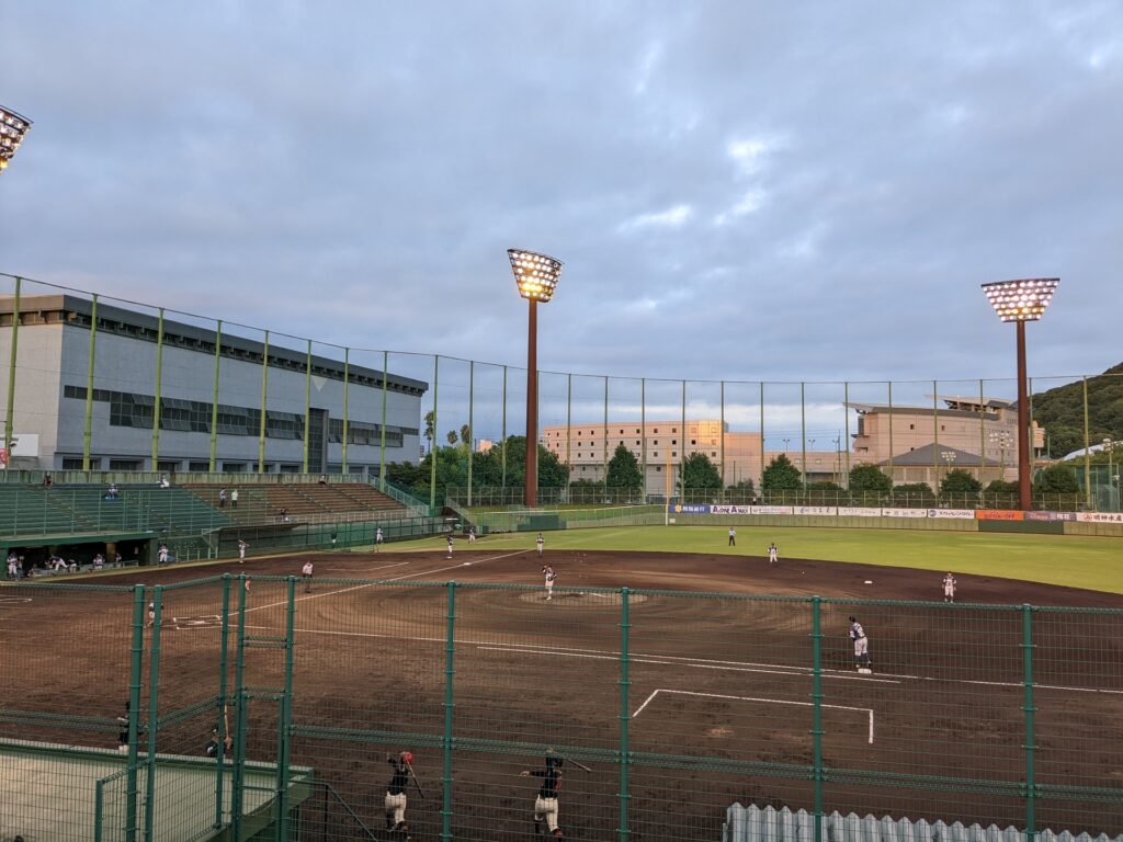 サッカーは昼間なので暑かったですが、野球は夕方からなので、ずいぶん涼しく快適でした。