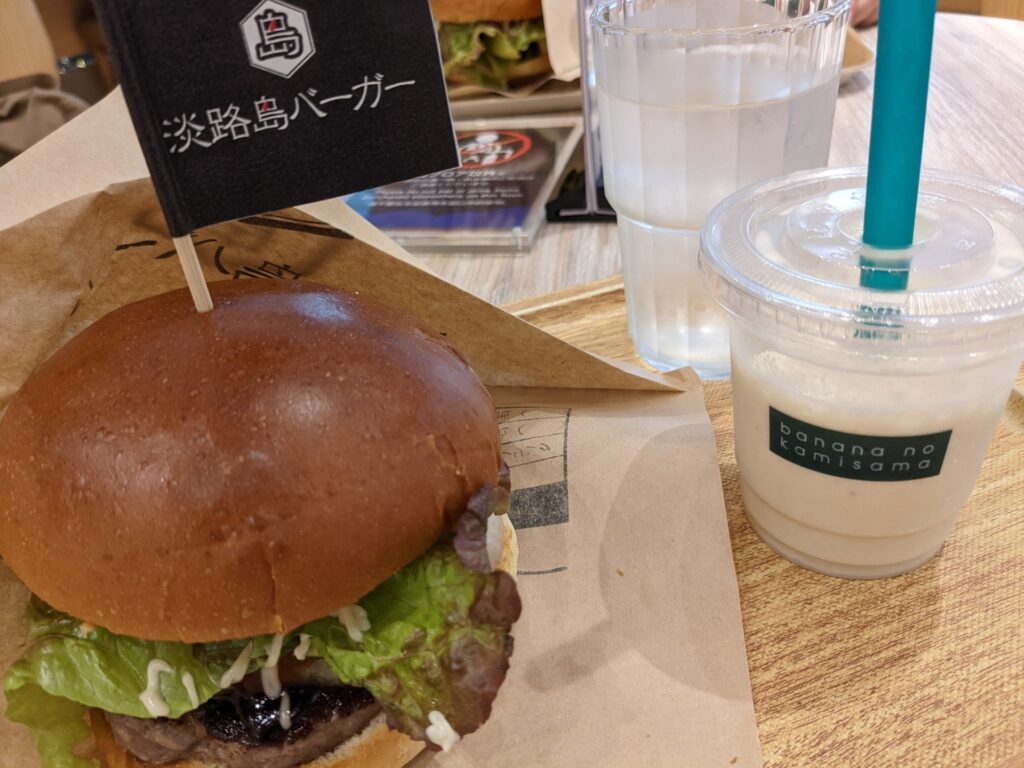 淡路島バーガーは、大阪初上陸のようです。写真ではわかりにくいですが、淡路ビーフに、分厚い玉ねぎが挟まっていて、超ボリューミー。