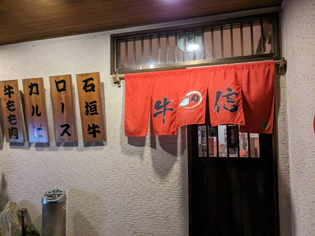11月に、土曜日の朝に放送している「旅サラダ」で、哀川翔さんと勝俣さんが紹介していた、「牛信」という石垣牛を扱うお店です。